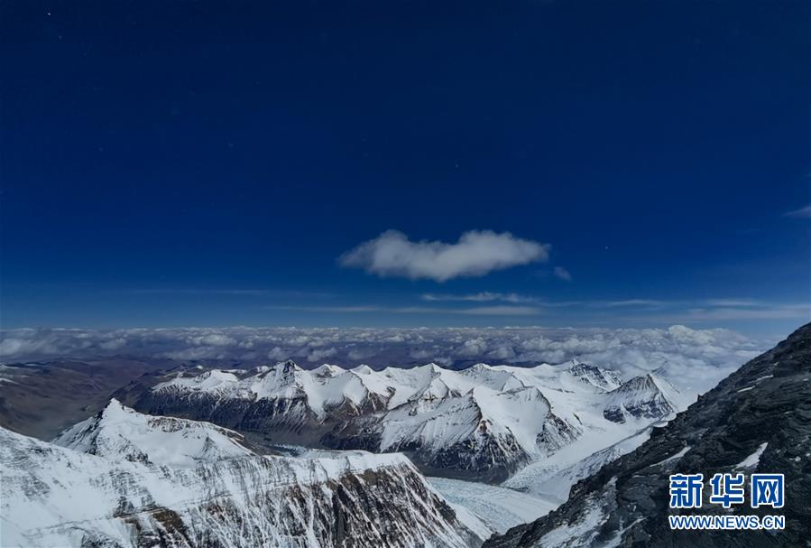從珠峰海拔7028米以上拍攝的壯美景色(5月11日攝)。從珠峰海拔7028米的一號(hào)營(yíng)地繼續(xù)向上攀登,沿途景色十分壯美。新華社特約記者拉巴攝