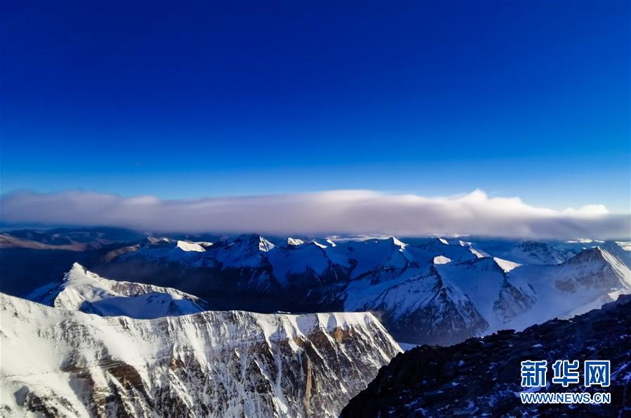 從珠峰海拔7028米以上拍攝的壯美景色(5月12日攝)。從珠峰海拔7028米的一號營地繼續(xù)向上攀登,沿途景色十分壯美。新華社特約記者拉巴攝