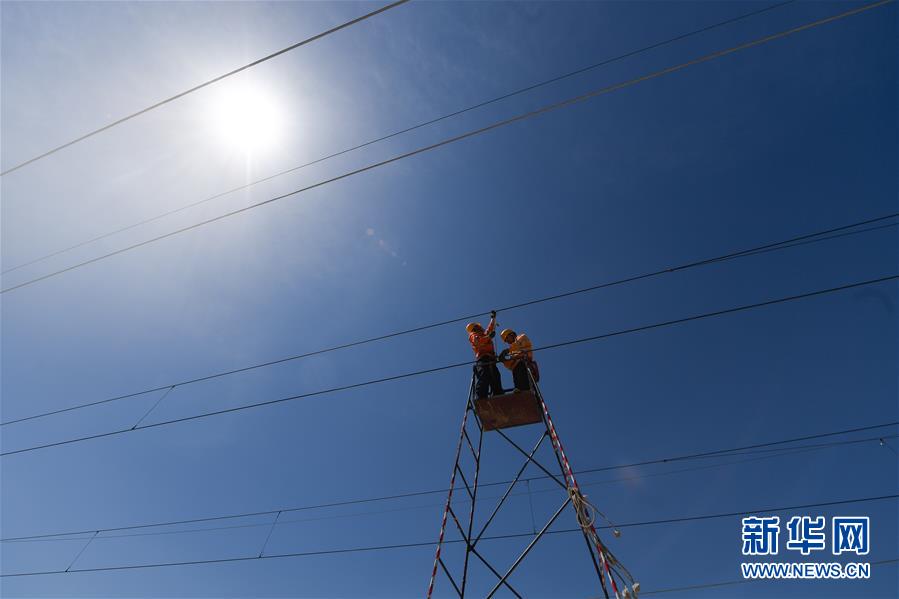 5月12日,中國鐵路上海局集團(tuán)公司上海高鐵維修段的技術(shù)人員在商合杭高鐵浙江湖州段調(diào)整接觸網(wǎng)導(dǎo)線。近日,商合杭高鐵合肥至湖州段聯(lián)調(diào)聯(lián)試正有條不紊進(jìn)行中。中國鐵路上海局集團(tuán)公司上海高鐵維修段抽調(diào)49名精兵強(qiáng)將,持續(xù)對管轄范圍內(nèi)的高鐵線路、信號(hào)、接觸網(wǎng)線進(jìn)行調(diào)試,為下一階段打下基礎(chǔ)。據(jù)了解,商合杭高鐵合湖段聯(lián)調(diào)聯(lián)試之后將轉(zhuǎn)入運(yùn)行試驗(yàn)階段,驗(yàn)收合格并通過安全評估后,力爭6月底具備開通運(yùn)營條件。新華社記者黃宗治攝
