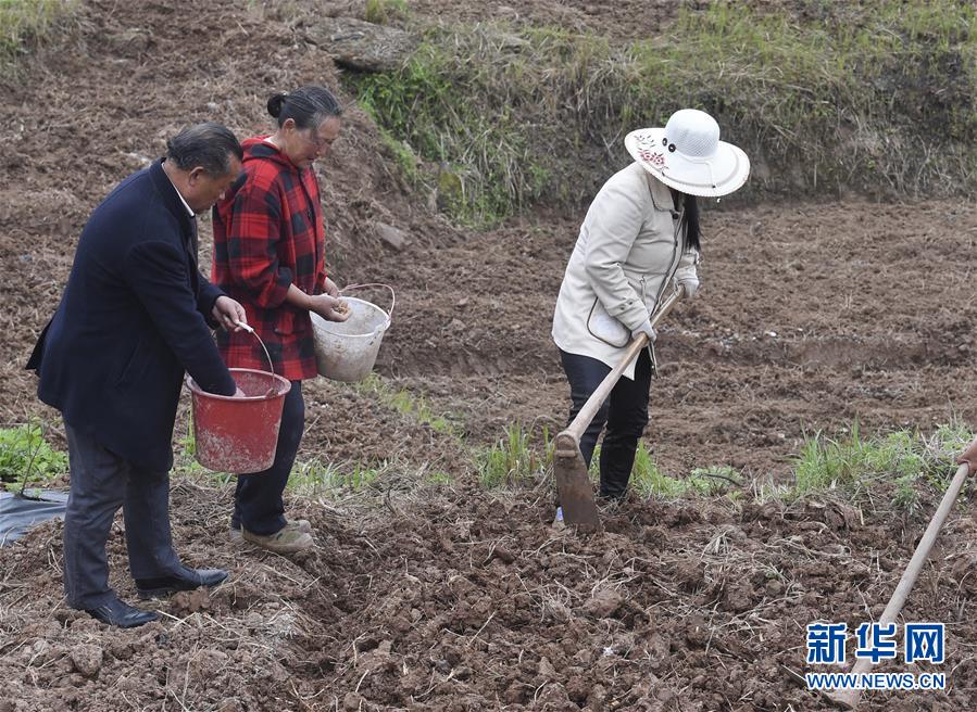 龍臺(tái)村村民在播種姜黃(4月1日攝)。新華社記者劉坤攝