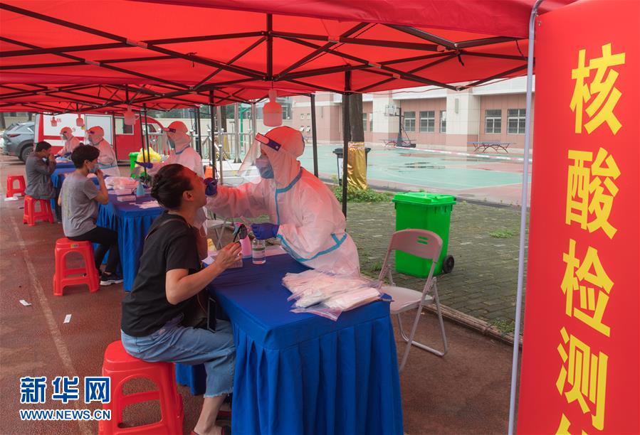 5月15日,在武漢東西湖區(qū)吳家山第一小學(xué)操場檢測點(diǎn),工作人員對(duì)市民進(jìn)行核酸檢測。近日,武漢將對(duì)全市市民有序開展核酸檢測,進(jìn)一步摸清無癥狀感染者底數(shù),進(jìn)而有效管控。新華社記者肖藝九攝