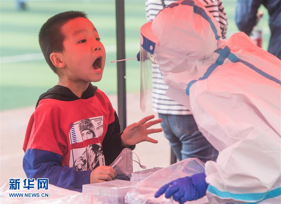 5月15日,在武漢東西湖區(qū)吳家山第一小學(xué)操場檢測點(diǎn),工作人員對市民進(jìn)行核酸檢測。近日,武漢將對全市市民有序開展核酸檢測,進(jìn)一步摸清無癥狀感染者底數(shù),進(jìn)而有效管控。新華社記者肖藝九攝