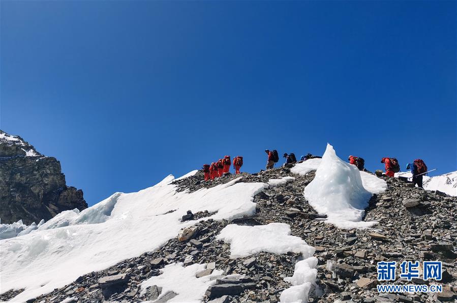 2020珠峰高程測量登山隊在前往海拔6500米的前進營地途中(5月17日攝)。新華社特約記者拉巴攝
