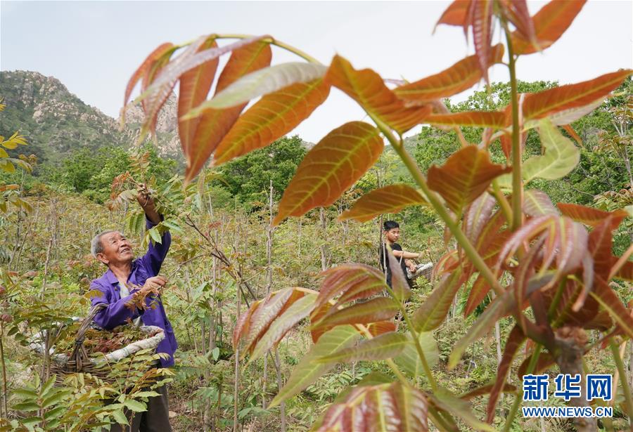 5月17日,秦皇島市撫寧區(qū)王家灣村的村民在自家香椿園采摘香椿芽。近年來,河北省秦皇島市撫寧區(qū)王家灣村村委會帶領村民在坡嶺荒地種植紅香椿樹1000多畝,綠化了荒坡荒地,增加了農民收入。新華社記者楊世堯攝