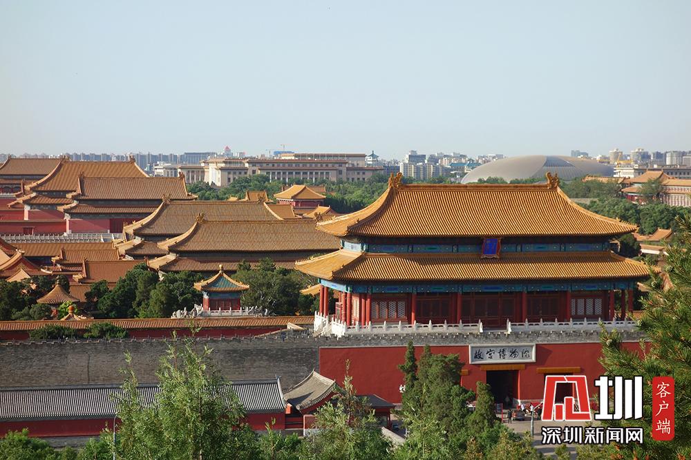 北京碧空萬(wàn)里 游客登景山公園賞故宮美景