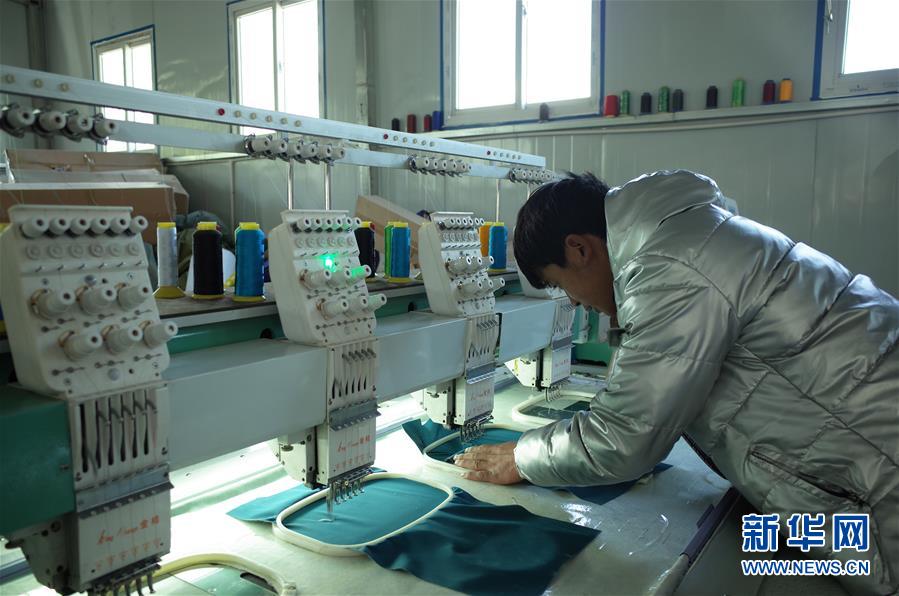 在西藏拉薩市達孜區(qū),縫紉工人加央旦增在服裝車間操作縫紉機(5月15日攝)。新華社記者格桑邊覺攝