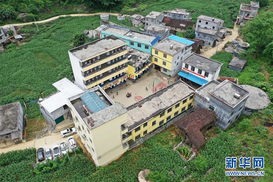 這是面貌煥然一新的廣西大化瑤族自治縣板升鄉(xiāng)弄勇小學(xué)(2019年5月10日攝,無人機(jī)照片)。新華社記者黃孝邦攝