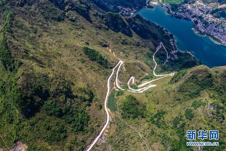 這是去年底通車的大化瑤族自治縣七百弄鄉(xiāng)江棟村那徐屯至弄獎(jiǎng)屯公路(5月14日攝,無(wú)人機(jī)照片)。新華社記者曹祎銘攝