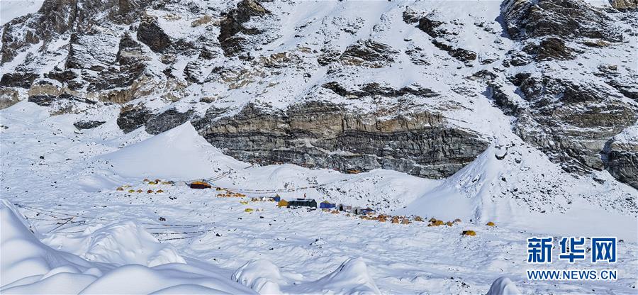于珠峰東絨布冰川旁海拔6500米的珠峰前進(jìn)營(yíng)地(5月22日攝,手機(jī)照片)。新華社記者晉美多吉攝