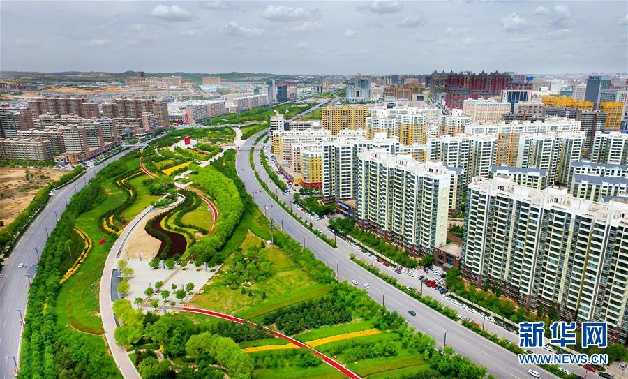 5月25日拍攝的榆林市高新區(qū)綠化走廊(無人機(jī)照片)。新華社記者陶明攝