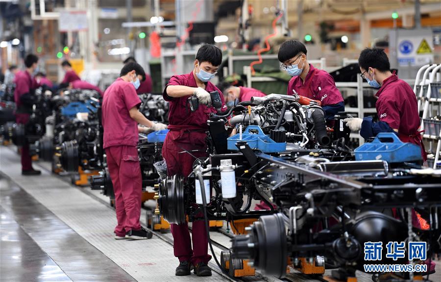 5月26日,工人在江淮汽車新港基地輕卡生產(chǎn)區(qū)內(nèi)忙碌。當(dāng)日,在位于安徽省合肥市肥西縣經(jīng)濟開發(fā)區(qū)的江淮汽車新港基地輕卡生產(chǎn)區(qū)內(nèi),工人在做好疫情防控的同時加緊生產(chǎn)。新華社記者劉軍喜攝