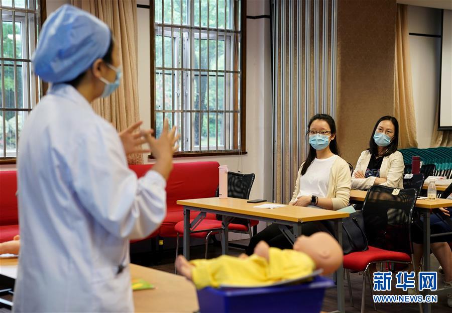 5月26日,孕婦們?cè)谥袊@麜?huì)國際和平婦幼保健院健康教育科孕婦學(xué)校上課。