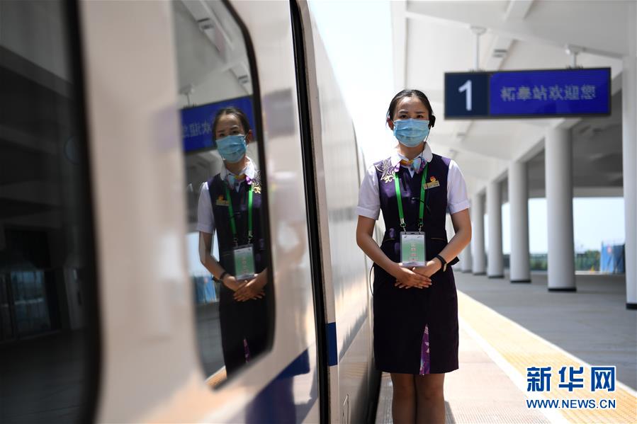 5月27日,試運行檢查確認列車乘務(wù)人員在商合杭高鐵柘皋站。新華社記者劉軍喜攝