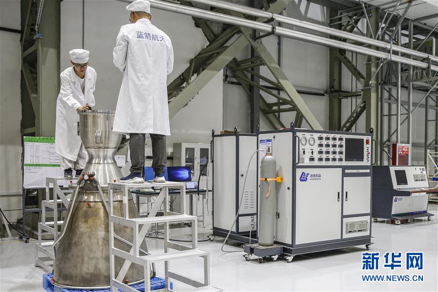 5月26日,工作人員在藍箭航天(湖州)智能制造基地發(fā)動機裝配區(qū)進行發(fā)動機質檢工作。新華社記者張玉薇攝