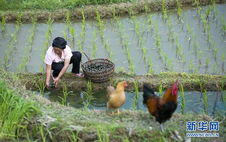 在田螺養(yǎng)殖過程中,采取“公司+合作社+農戶”的模式,政府統(tǒng)一向龍頭公司采購種螺交給合作社,合作社根據貧困戶水田規(guī)模和意愿發(fā)放種螺,同時公司技術人員入村開展養(yǎng)殖技術培訓,田螺收獲時再由合作社對接種螺公司統(tǒng)一上門按保底價回收,解除了貧困戶養(yǎng)殖和銷售的后顧之憂,進一步拓寬山區(qū)群眾脫貧增收渠道。新華社記者楊文斌攝
