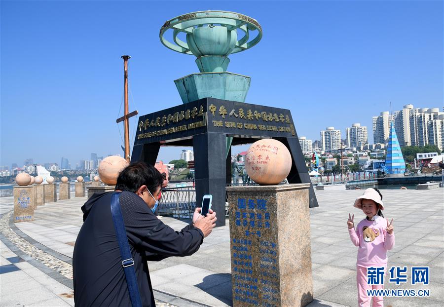 5月28日,游客在中華人民共和國水準零點景區(qū)留影。新華社記者李紫恒攝