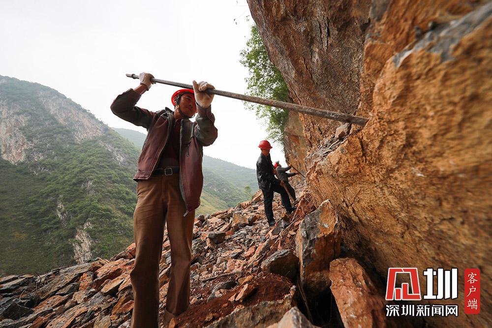 經(jīng)過幾年的努力,修通了大約4公里的毛路,但剩下觀音巖近1000米的懸崖絕壁成了當(dāng)?shù)厝罕娒撠毠?jiān)路上的“攔路虎”,幾批施工隊(duì)伍都因?yàn)槭┕るy度大而放棄。2019年底,化作鄉(xiāng)黨委政府順應(yīng)民意,多方籌措資金,決定打通這條產(chǎn)業(yè)路、民心路的“最后一公里”。今年1月工程啟動(dòng)后,深受當(dāng)?shù)厝罕姎g迎,大家踴躍投工投勞,義務(wù)參與建設(shè)。