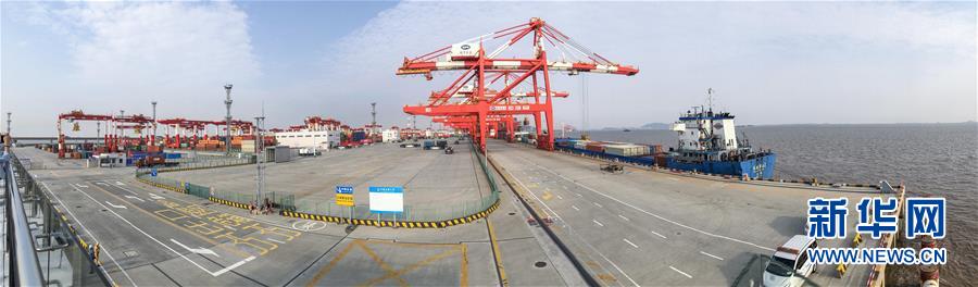 5月28日拍攝的上海洋山港四期自動(dòng)化碼頭(全景照片)。