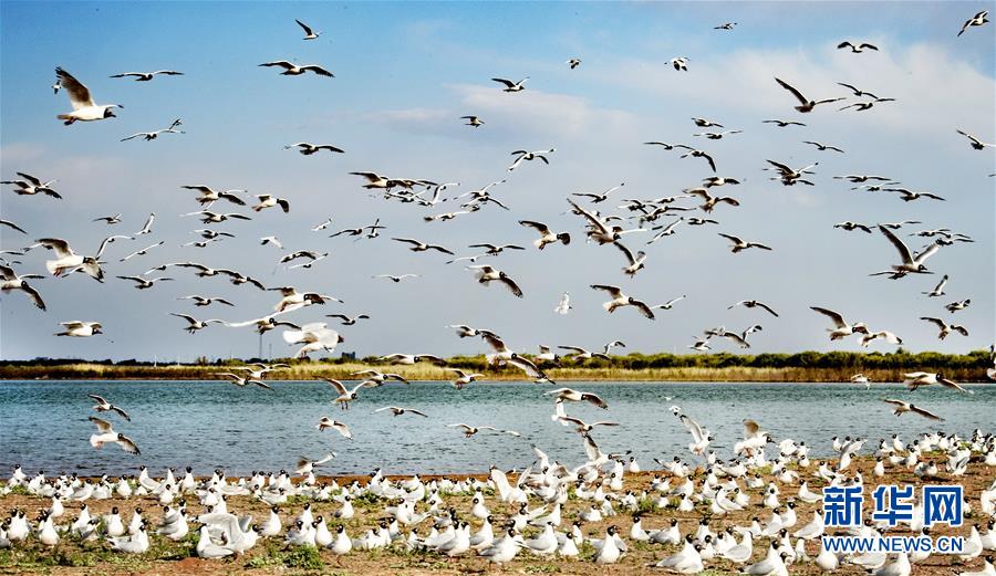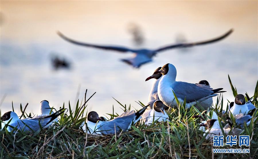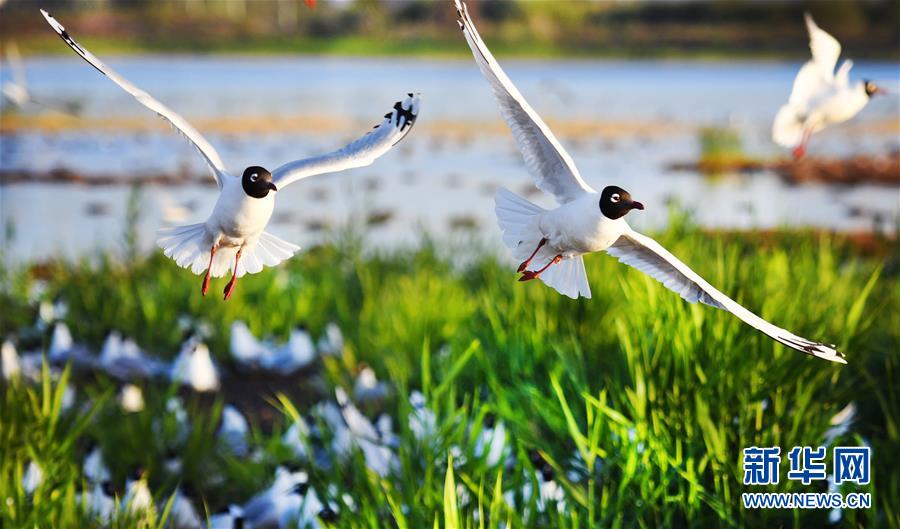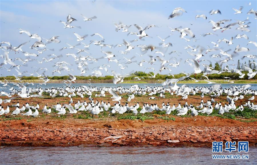 5月28日在陜西省神木市紅堿淖拍攝的遺鷗。陜西省神木市紅堿淖是中國(guó)最大的沙漠淡水湖,近年來(lái)隨著周邊生態(tài)環(huán)境改善,紅堿淖水位逐年提升,水域面積不斷擴(kuò)大,每年四至八月,都會(huì)吸引大批遺鷗來(lái)此繁衍棲息,已成為遺鷗繁殖的重要基地。新華社記者劉瀟攝