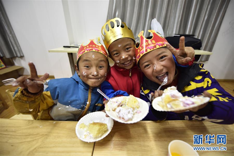 5月27日,玉麥鄉(xiāng)小學(xué)的孩子們?cè)趹c?!吧铡薄P氯A社記者王炳坤攝