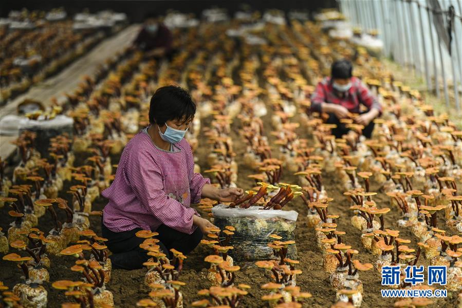 5月30日,在山東省棗莊市嶧城區(qū)峨山鎮(zhèn)食用菌培植扶貧基地,工人在進(jìn)行靈芝種植管理。為了幫助貧困戶穩(wěn)定脫貧,山東省棗莊市嶧城區(qū)峨山鎮(zhèn)采取“公司+基地+農(nóng)戶”的經(jīng)營模式,建立食用菌培植扶貧基地,發(fā)展食用菌種植產(chǎn)業(yè),惠及160余名貧困戶。目前,基地已集菌種試驗(yàn)、培育、生產(chǎn)、銷售于一體,年銷售菌棒500多萬袋,生產(chǎn)各類鮮菇1200余噸。新華社記者 范長國 攝