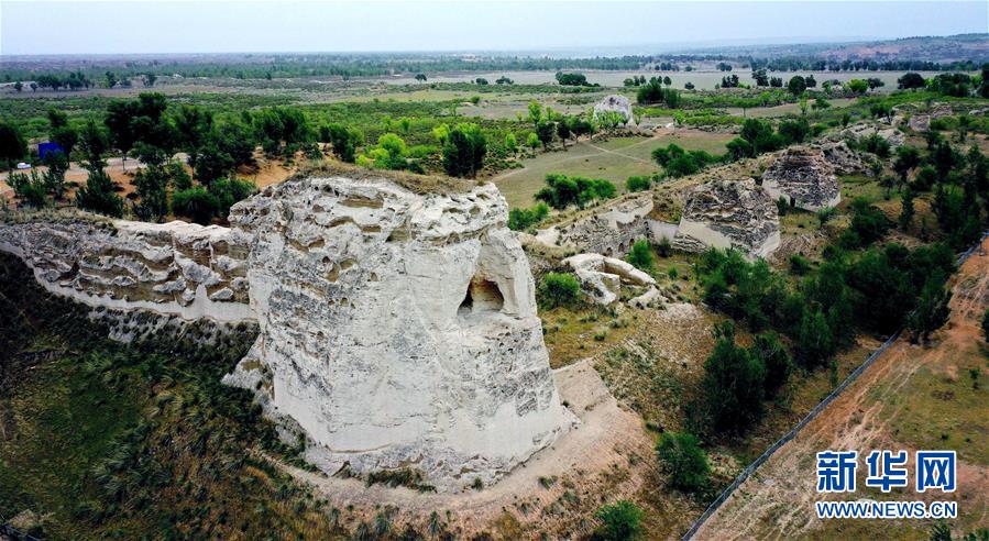 統(tǒng)萬(wàn)城保留最完整的一段城墻遺址(5月30日攝,無(wú)人機(jī)照片)。