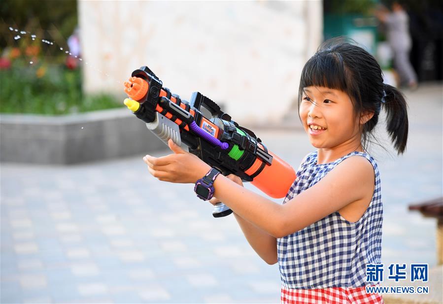 5月31日,在北京市海淀區(qū)中關(guān)村街道新科祥園社區(qū)廣場,小朋友在玩耍。新華社記者任超攝