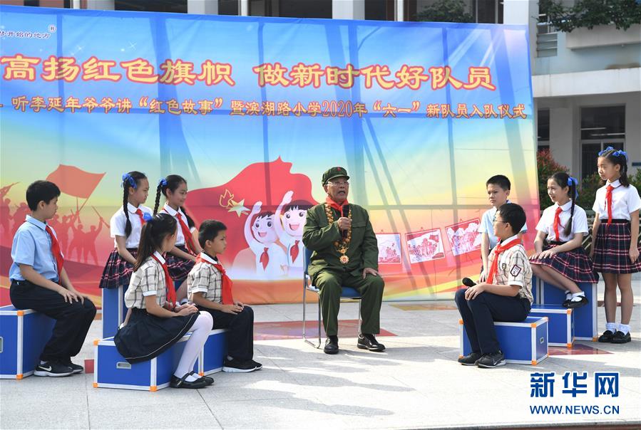5月29日,李延年給孩子們講述紅色故事?!傲弧眹H兒童節(jié)來臨之際,“共和國勛章”獲得者、老一輩戰(zhàn)斗英雄李延年來到廣西南寧市濱湖路小學(xué)給孩子們講述戰(zhàn)爭年代的紅色故事,寄語他們好好學(xué)習(xí)、努力奮斗。孩子們向李延年贈(zèng)送了師生共繪的“紅色畫卷”,向老英雄致敬。新華社記者周華攝