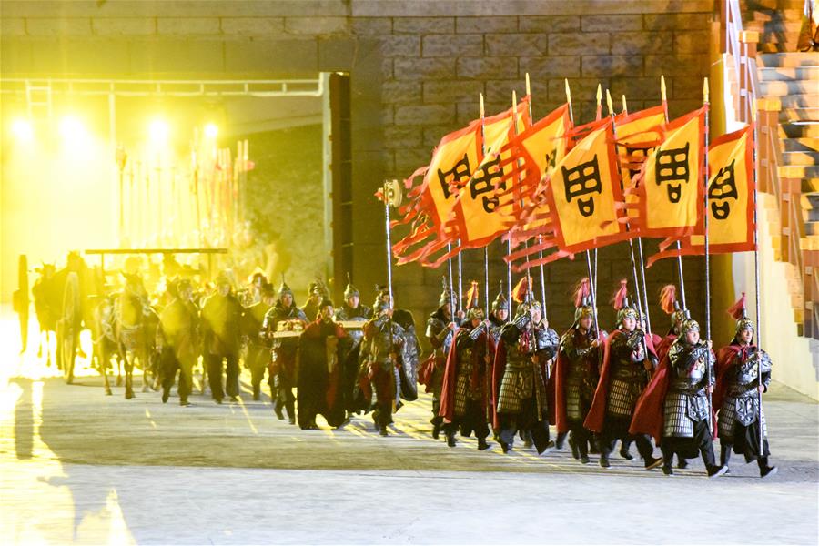 5月28日,演員在大型實景神話音樂劇《昆侖之約》中表演。5月28日,新疆文化旅游新名片——大型實景神話音樂劇《昆侖之約》在烏魯木齊南山景區(qū)上演。該劇融自然山水之美、藝術文化之光、現(xiàn)代科技之新于一體,為市民獻上一場視聽盛宴。新華社記者丁磊攝。