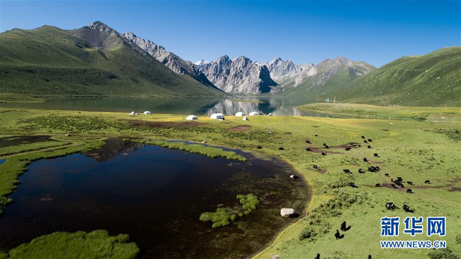 2019年7月8日拍攝的位于三江源地區(qū)的青海省果洛藏族自治州久治縣境內的年保玉則風光(無人機照片)。6月2日,青海省生態(tài)環(huán)境廳發(fā)布《2019年青海省生態(tài)環(huán)境狀況公報》稱,青海省三江源地區(qū)境內的長江、黃河、瀾滄江干流流域水質優(yōu)良,植被覆蓋度呈增長趨勢,全省生態(tài)環(huán)境狀況總體保持穩(wěn)定。新華社記者吳剛攝。