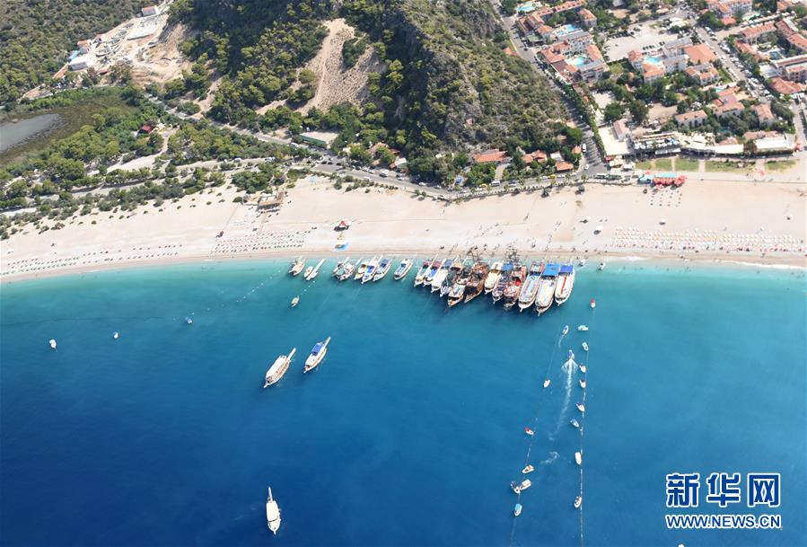 這是2018年7月23日在土耳其西南部的費特希耶拍攝的海灘和游船。6月5日是第47個聯(lián)合國世界環(huán)境日,今年的主題為“關愛自然刻不容緩”。新華社記者賀燦鈴攝。