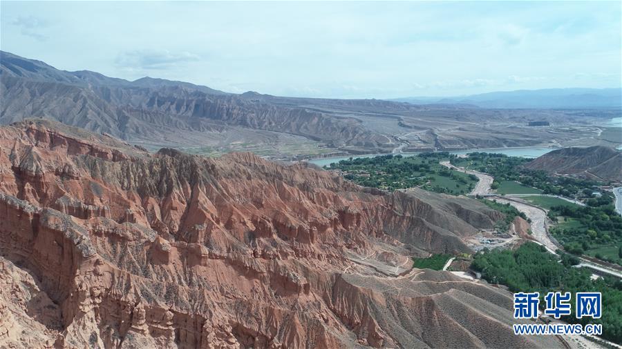 這是6月5日拍攝的位于青海省海南藏族自治州貴德縣境內的丹霞地貌(無人機照片)。在青海省海南藏族自治州貴德縣境內,色彩斑斕的丹霞地貌美如畫卷。新華社記者趙玉和攝。