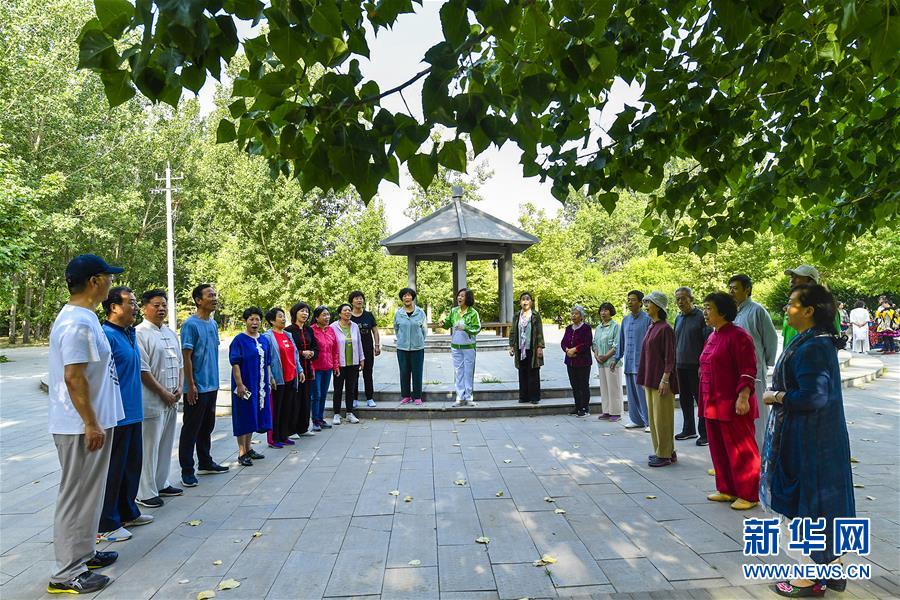 6月5日,市民在文安縣水景公園內(nèi)練習(xí)合唱。近年來,河北省文安縣將植樹造林與城市建設(shè)有機(jī)融合,探索“政府引導(dǎo)、企業(yè)運(yùn)作、多方共贏”的市場(chǎng)化植樹造林新模式,大規(guī)模推進(jìn)國土綠化,打造人與自然和諧共生的優(yōu)美生態(tài)環(huán)境,構(gòu)筑京津雄綠色屏障。截至目前,該縣森林覆蓋率已經(jīng)達(dá)到33%,城區(qū)綠地面積達(dá)到36.48%。新華社記者李曉果攝。