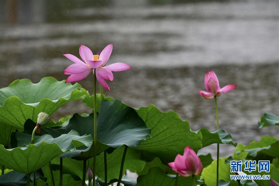 6月7日,一陣小雨過后,福州金山公園內(nèi)盛開的荷花愈加嬌艷欲滴。新華社記者姜克紅攝
