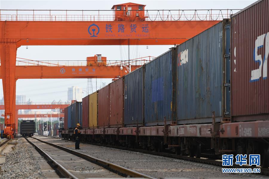 6月6日,合肥首開至荷蘭蒂爾堡的中歐班列(上)準備從合肥北站物流基地駛出(無人機照片)。當(dāng)日,搭載82個標準集裝箱的中歐班列從中國鐵路上海局集團有限公司合肥貨運中心合肥北站物流基地駛出發(fā)往荷蘭蒂爾堡,標志著合肥中歐班列通往荷蘭蒂爾堡的線路正式開通。新華社記者張端攝