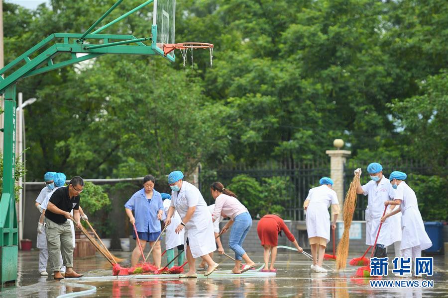 6月8日,在永州市江華瑤族自治縣白芒營(yíng)鎮(zhèn)車下完全小學(xué),工作人員在校園里清淤。受近日持續(xù)強(qiáng)降雨影響,湖南省永州市江華瑤族自治縣發(fā)生洪澇災(zāi)害。6月8日,永州市江華瑤族自治縣白芒營(yíng)鎮(zhèn)車下完全小學(xué)開展清淤、消毒工作,為6月9日恢復(fù)上課做準(zhǔn)備。新華社記者陳澤國(guó)攝