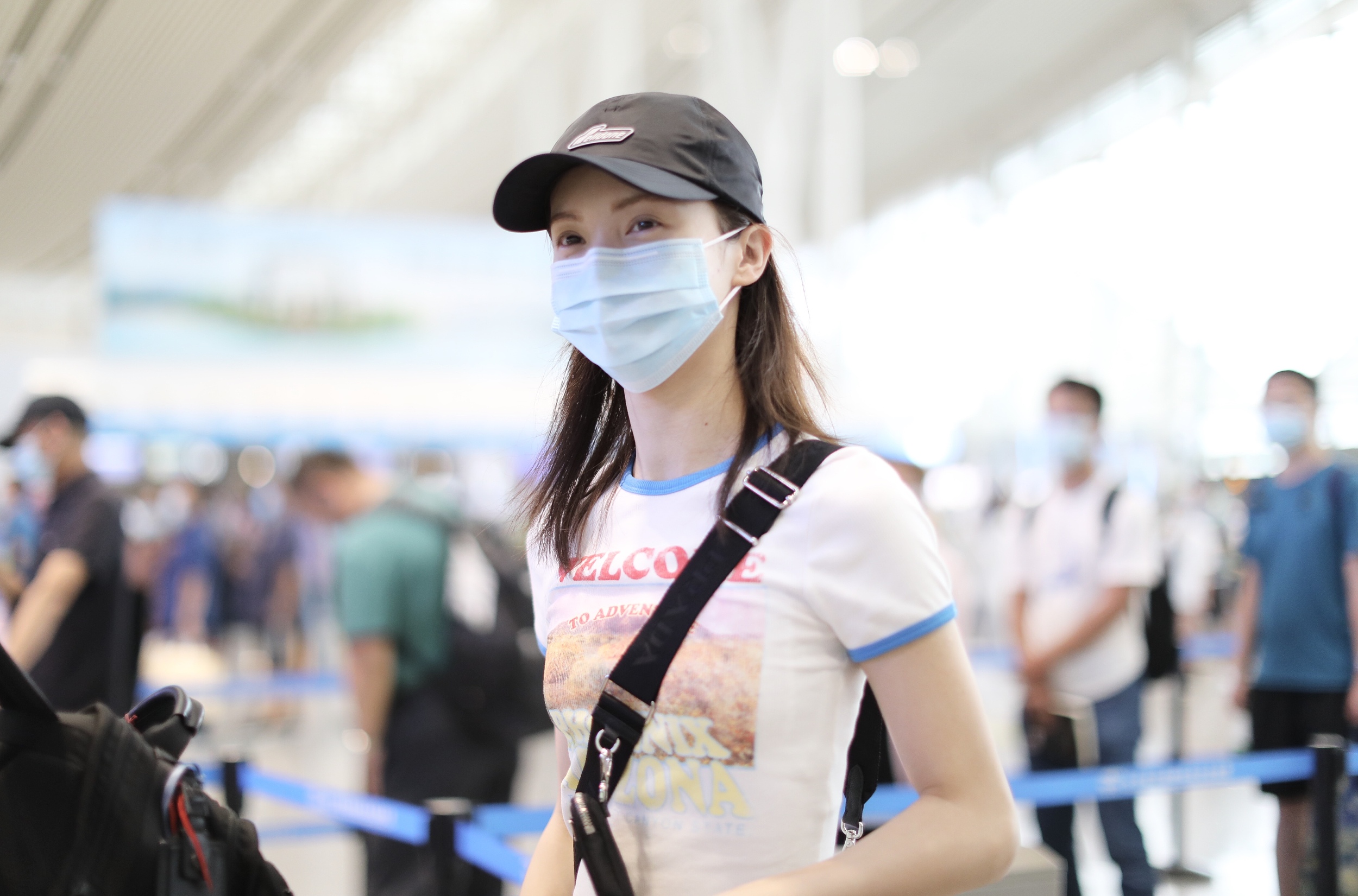 2020年6月9日,湖南長沙,金晨現(xiàn)身機(jī)場。大清早出現(xiàn)的她狀態(tài)不錯,戴著棒球帽身著超短白T,大秀水蛇腰及腰鏈,一路心情超好,更不時笑成月牙眼!