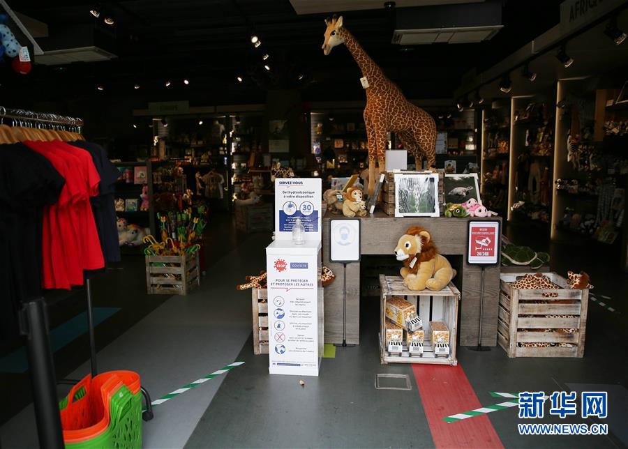 6月9日,法國巴黎動(dòng)物園的紀(jì)念品商店入口處為游客提供消毒免洗洗手液,并在地上標(biāo)注了參觀方向。受新冠疫情影響關(guān)閉了近3個(gè)月的巴黎動(dòng)物園于8日重新開放。新華社記者高靜攝
