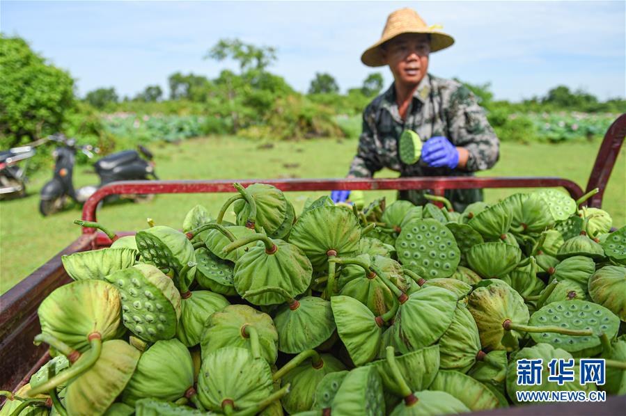 6月9日,村民在??邶埲A區(qū)龍泉鎮(zhèn)椰子頭村搬運(yùn)采摘的蓮蓬。初夏時(shí)節(jié),位于海南??邶埲A區(qū)龍泉鎮(zhèn)的蓮蓬逐漸成熟,當(dāng)?shù)卮迕窦泳o采摘,一派繁忙景象。新華社記者蒲曉旭攝