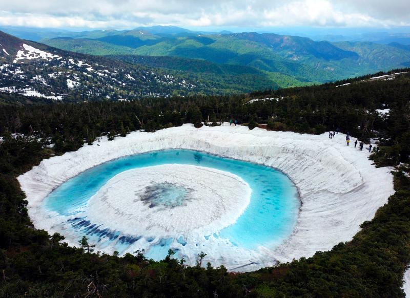 當(dāng)?shù)貢r間2020年6月8日,日本,在橫跨巖手縣與秋田縣的八幡平山頂附近的“鏡沼”,伴隨著“鏡沼”的積雪從外側(cè)逐漸融化,外圍的碧藍(lán)色湖水與中心部的潔白積雪相映成趣,呈現(xiàn)出獨特的類似“龍眼”的景象。據(jù)悉,八幡平“龍眼”奇景只在每年5月下旬至6月初的雪融期間短暫出現(xiàn)。
