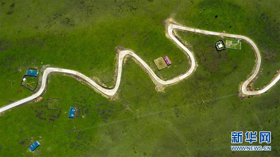 這是6月13日無人機(jī)航拍的“上南天路”和路邊的牧民居所。居住在路邊的牧民,因?yàn)橛辛诉@條路,出行更加方便。新華社記者 沈伯韓 攝