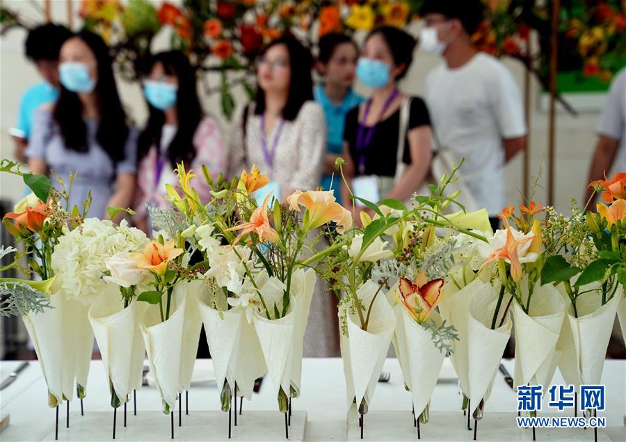 這是開幕式現(xiàn)場展示的大學(xué)生設(shè)計創(chuàng)作的萱草花小花束(6月13日攝)。6月13日,“2020中國(上海)萱草文化節(jié)”在上海應(yīng)用技術(shù)大學(xué)開幕,校園里數(shù)百個品種的萱草花競相綻放,萱草科研推廣、萱草文化交流等多項活動同時舉行。新華社記者 劉穎 攝