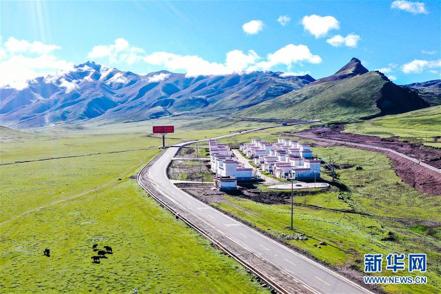 國(guó)道317線旁的一處易地扶貧搬遷點(diǎn)(6月14日攝,無(wú)人機(jī)照片)。新華社記者 田金文 攝