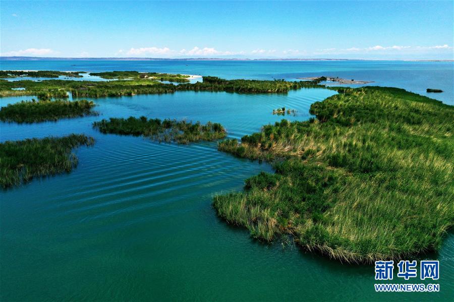 6月19日拍攝的新疆烏倫古湖國家濕地公園(無人機照片)。烏倫古湖國家濕地公園位于新疆阿勒泰地區(qū)福海縣城以西,由烏倫古湖和吉力湖兩部分組成。烏倫古湖濕地公園是遷徙候鳥飛越天山和阿爾泰山的“能量補充站”,良好的濕地生態(tài)吸引著大量遷徙鳥類在此集結成群,繁殖棲息,成為一道靚麗的風景線。新華社記者 沙達提 攝