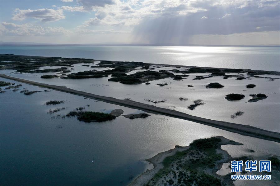 6月18日拍攝的新疆烏倫古湖國家濕地公園(無人機照片)。烏倫古湖國家濕地公園位于新疆阿勒泰地區(qū)福??h城以西,由烏倫古湖和吉力湖兩部分組成。烏倫古湖濕地公園是遷徙候鳥飛越天山和阿爾泰山的“能量補充站”,良好的濕地生態(tài)吸引著大量遷徙鳥類在此集結(jié)成群,繁殖棲息,成為一道靚麗的風(fēng)景線。新華社記者 沙達提 攝