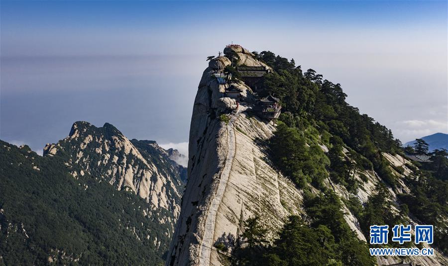6月18日拍攝的華山西峰(無人機照片)。當日,西岳華山經(jīng)歷連續(xù)三天暴雨后,迎來燦爛的陽光。新華社記者 陶明 攝