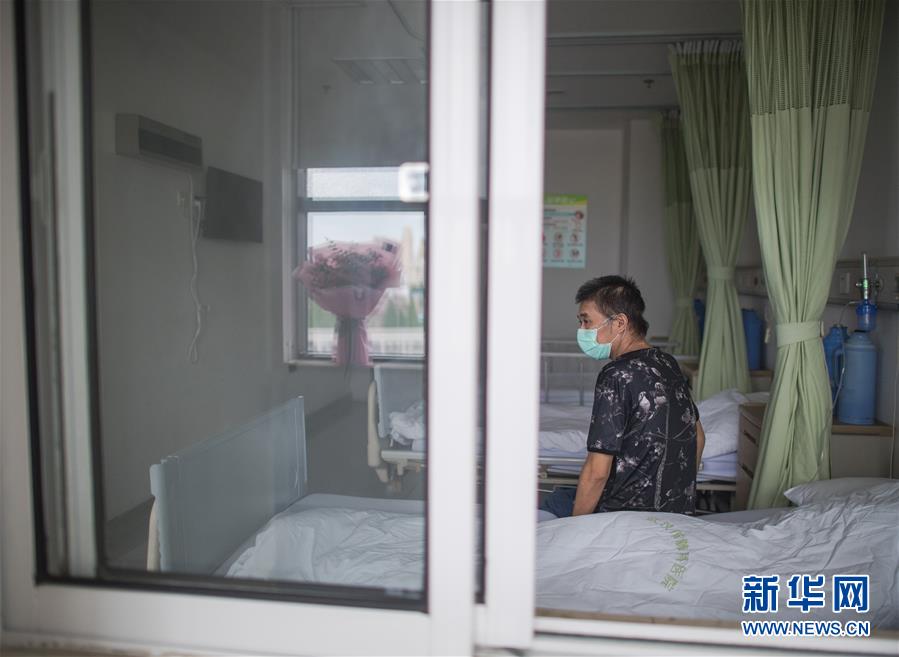 6月17日,胡定江在病房等待出院,窗臺的鮮花是他準(zhǔn)備在出院時(shí)送給醫(yī)護(hù)人員的。用過ECMO(人工膜肺)等設(shè)備,經(jīng)過多省市專家的聯(lián)合救治,在院100多天,先后經(jīng)歷了ICU、過渡病房、隔離病房、普通病房的40歲新冠肺炎康復(fù)患者胡定江,目前康復(fù)良好,經(jīng)專家研判,于6月17日出院。新華社記者肖藝九攝
