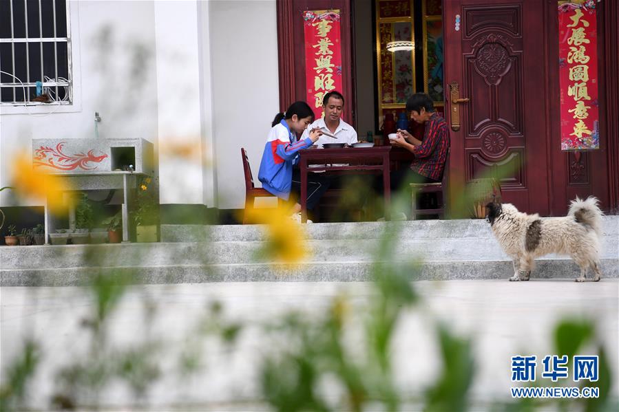 6月19日,在金寨縣三合實驗學(xué)校,蔡齊艷和同學(xué)一起吃午飯。新華社記者張端攝