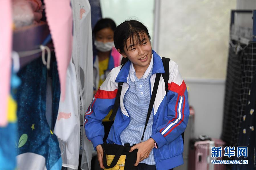 6月19日,在金寨縣三合實驗學(xué)校宿舍,蔡齊艷放學(xué)后收拾行李準備回家過周末。新華社記者劉軍喜攝