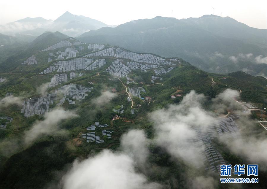 這是金寨縣桃?guī)X鄉(xiāng)高灣村的茶產(chǎn)業(yè)扶貧和光伏扶貧項(xiàng)目(6月20日無人機(jī)照片)。新華社記者張端攝